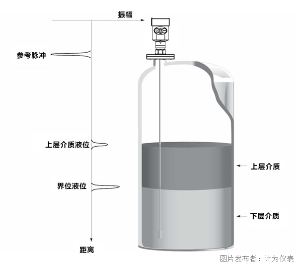 导波雷达在上下两相介电常数差异满足时,可以在气-液界面和液-液界面构成多个反射点,完成液位与界面的一起丈量。